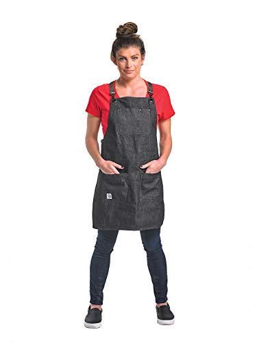 indiamart Mercer Culinary Metro Edge Server Apron, Bib, Renegade Black Denim with Brown Leather Straps